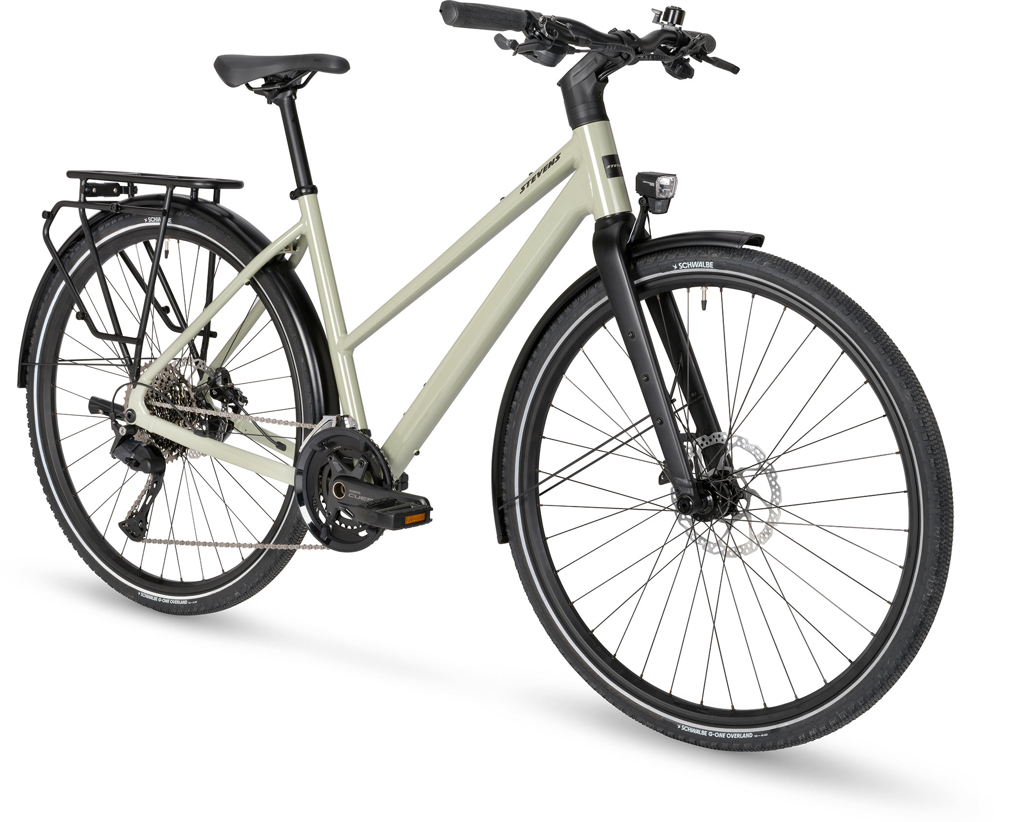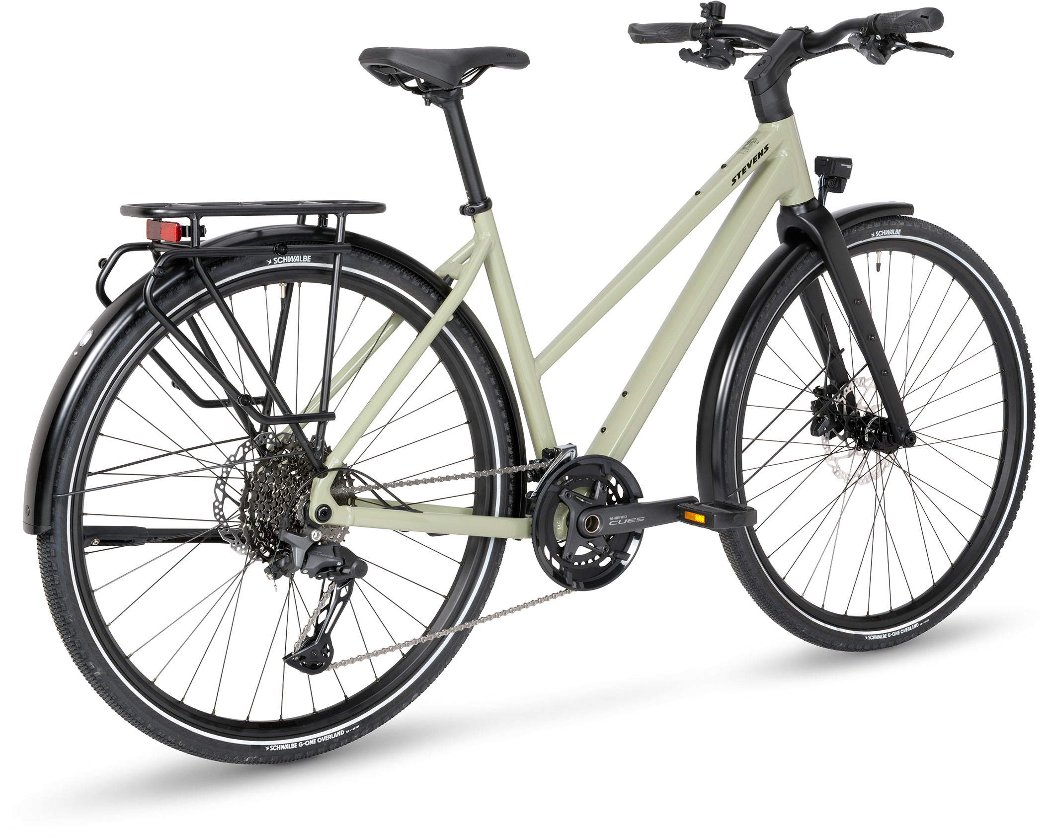 The high-quality city tourer bike – perfect for leisure and commuting. Whether you're going on a multi-day tour with luggage, a weekend trip or your daily commute – thanks to its dynamic, lively aluminium frame in subtle grey green and the lightweight, stable aluminium fork, the Caleta 8.1 stands for maximum riding pleasure. The Shimano CUES U6000 2x11 gear system ensures reliable and smooth gear changes on any terrain and is easy to maintain. The luggage rack makes your everyday life easier. The bright hub dynamo LED lighting ensures safety and style.