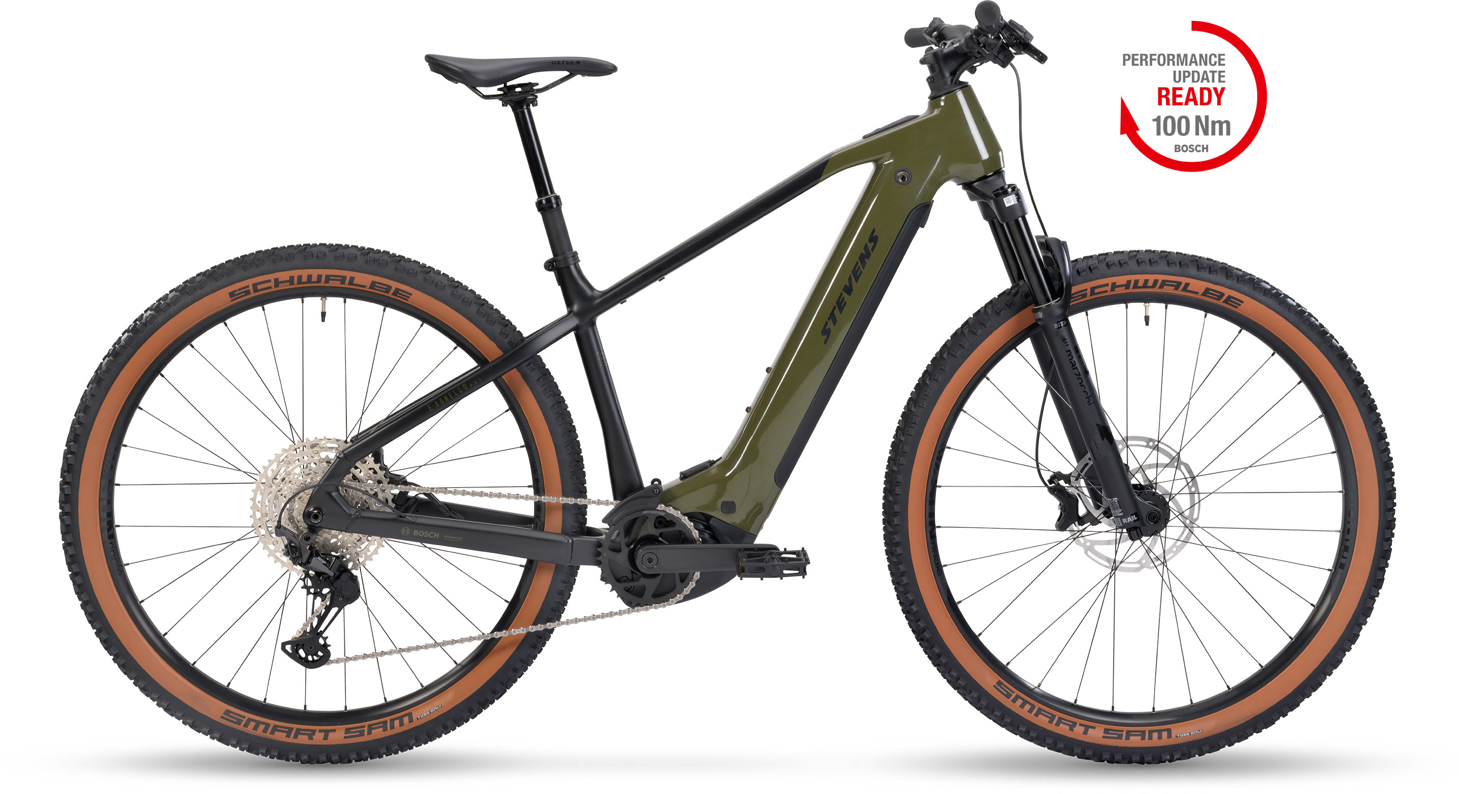 A finely tuned frame with sporty, comfortable trail geometry and carefully selected high-end components - these are the ingredients of this top-class EHardtail MTB. The extra-powerful 800 Wh Bosch PowerTube battery integrated in the down tube ensures extra-long riding fun, even off the beaten track. Reliable Tektro 4-piston brakes provide reliable stopping power even on steep descents and the Marzocchi Bomber Z2 suspension fork combines comfort with outstanding traction.