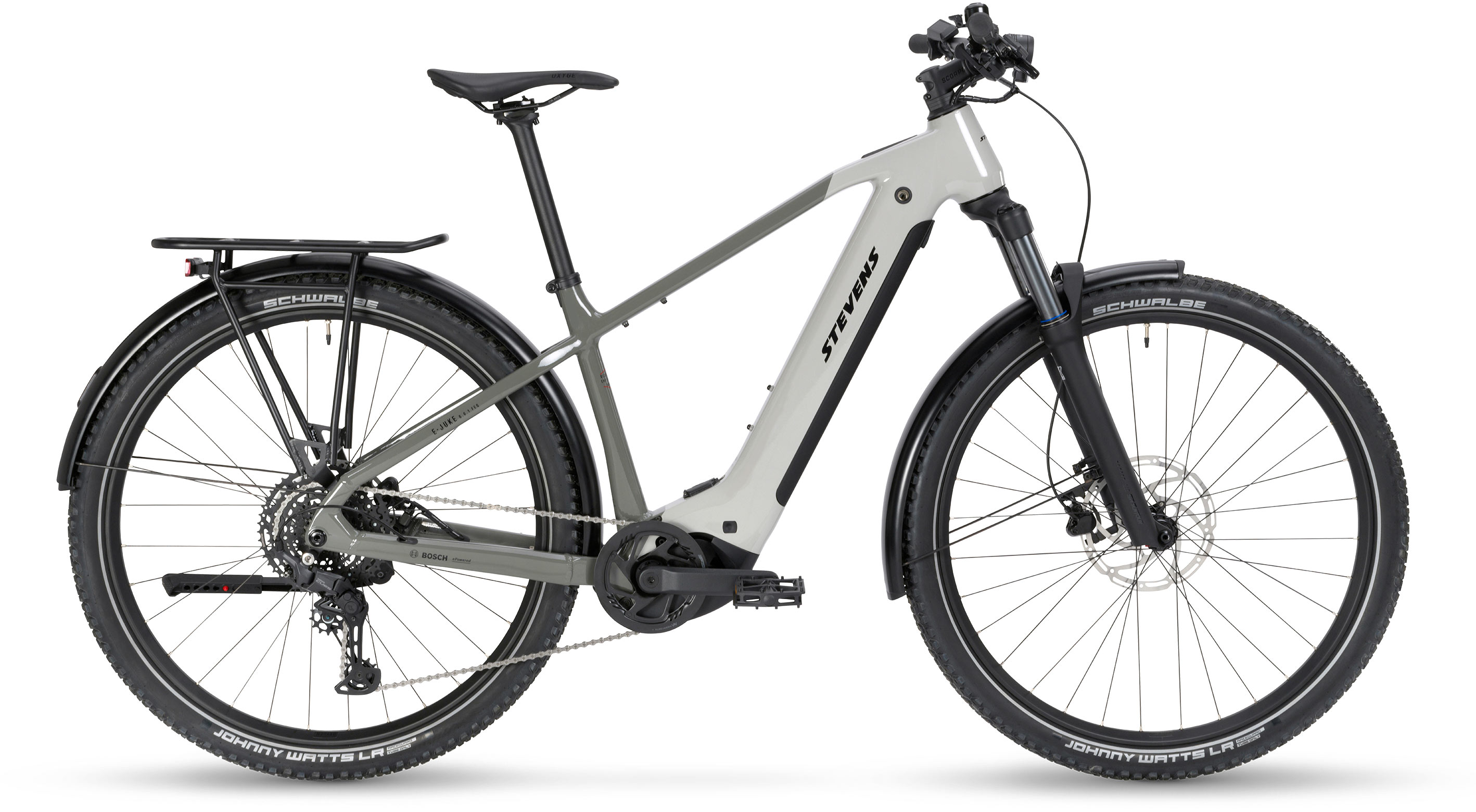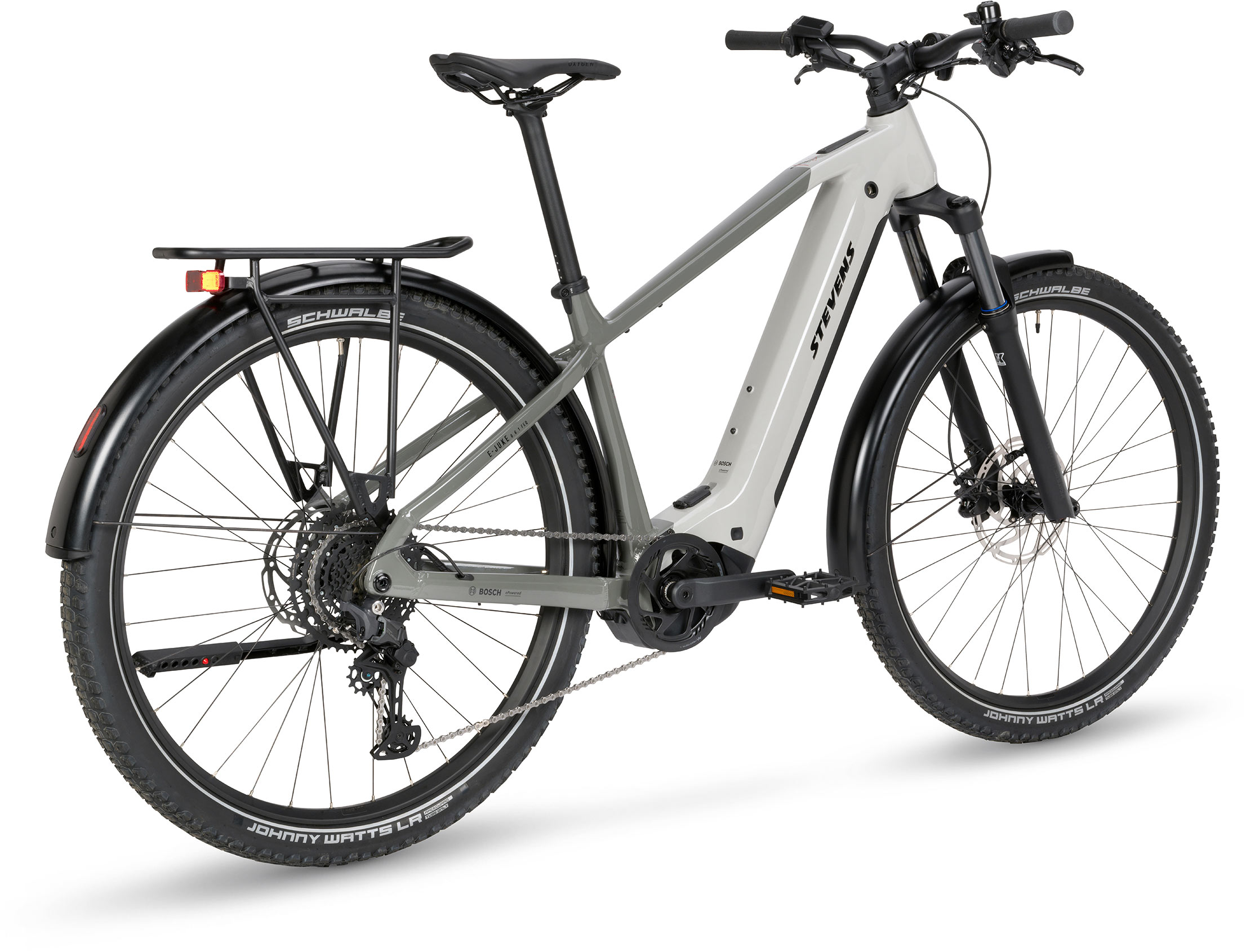 The E-Juke 6.6.1 FEQ is the ideal companion – whether for commuting, an after-work detour through the woods or weekend tours. At its heart is the smart Bosch Performance Line Drive Unit with a 600 Wh battery, which provides powerful, quiet and natural assistance with up to 75 Nm of torque. The Schwalbe Johnny Watts tyres offer smooth running, durability and strong puncture protection. Available in London Grey with full FEQ everyday equipment: robust aluminium mudguards, powerful LED lighting and Racktime rear rack.