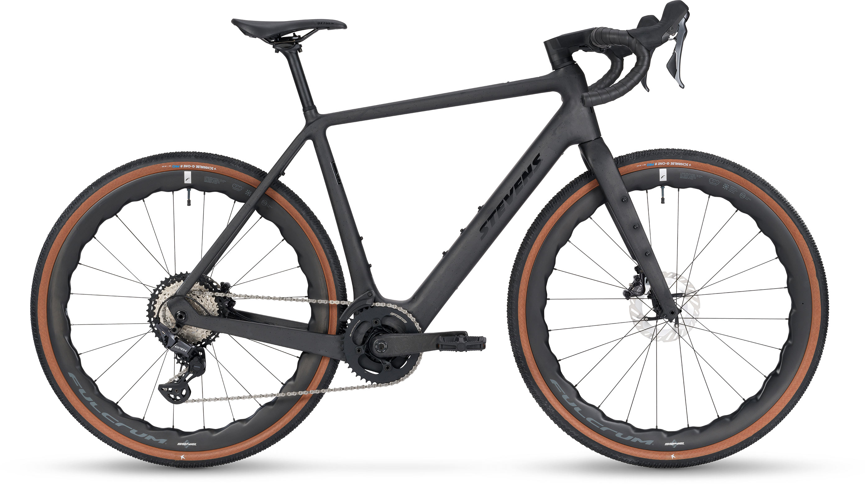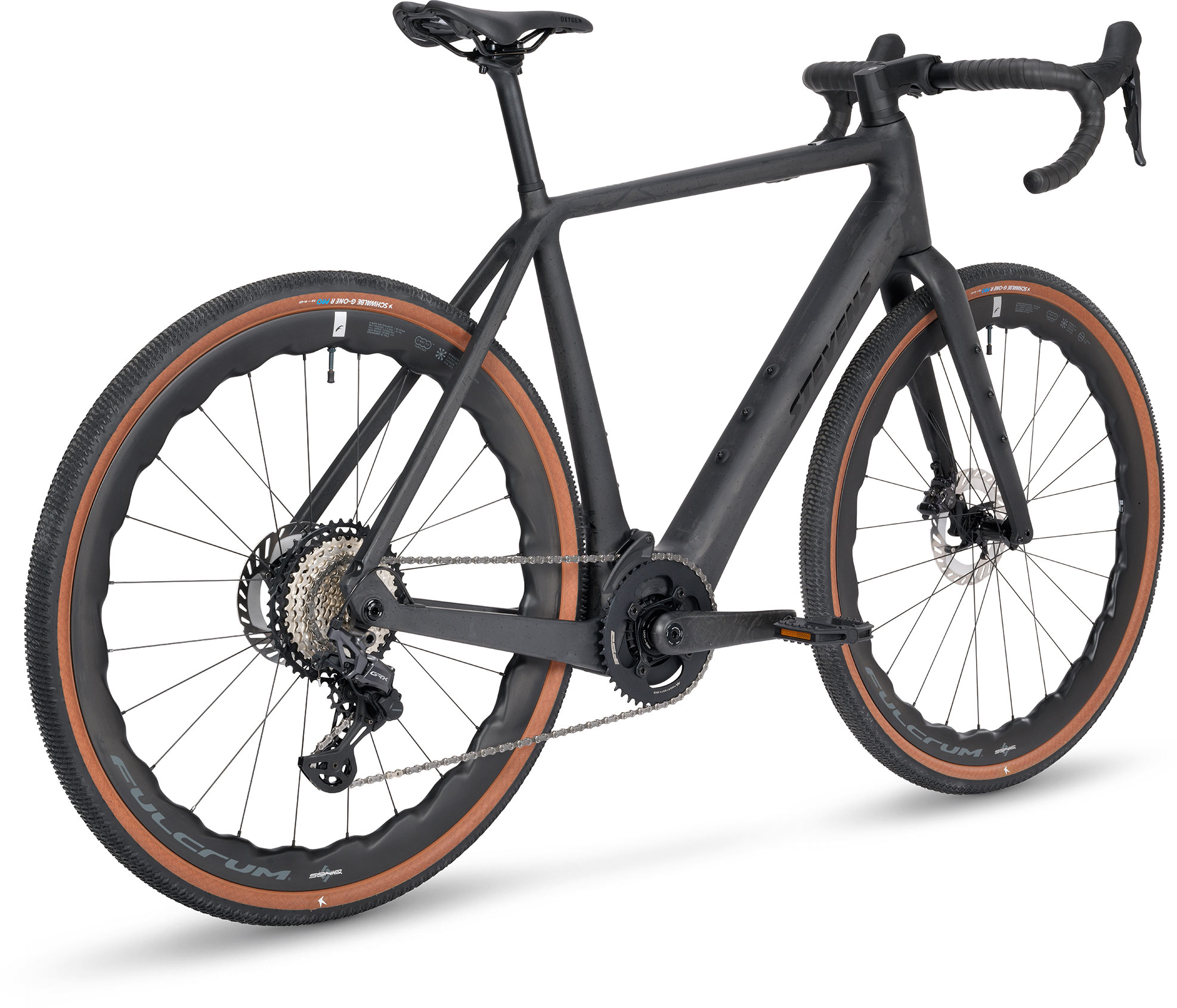 Based on the award-winning geometry of the Camino gravel bike family, the E-Getaway offers a sporty yet comfortable riding position for perfect bike control and plenty of comfort, even on long tours. The low total weight of just over 13.2 kilograms is made possible by an optimised frame design. At the same time, the high-tech carbon frame offers high rigidity even when heavily loaded with bikepacking accessories. The STEVENS E-Getaway benefits uniquely from the latest generation of Light Assist e-drives. The TQ-HPR60 drive unit, discreetly integrated into the frame, provides natural assistance to your own pedalling power at all times, especially on inclines and when carrying heavier loads. The 360 Wh battery, which is permanently installed in the slim down tube, combines with the efficient drive unit to provide a long range, which can be further increased with the optional 160 Wh range extender. The other features are also impressive: the Shimano GRX 820-based drivetrain offers a wide gear range for mountains and flat terrain. High-quality Fulcrum Soniq wheels with 45 mm wide Schwalbe G-One R Pro tyres ensure plenty of robustness, propulsion and comfort on challenging gravel rides.