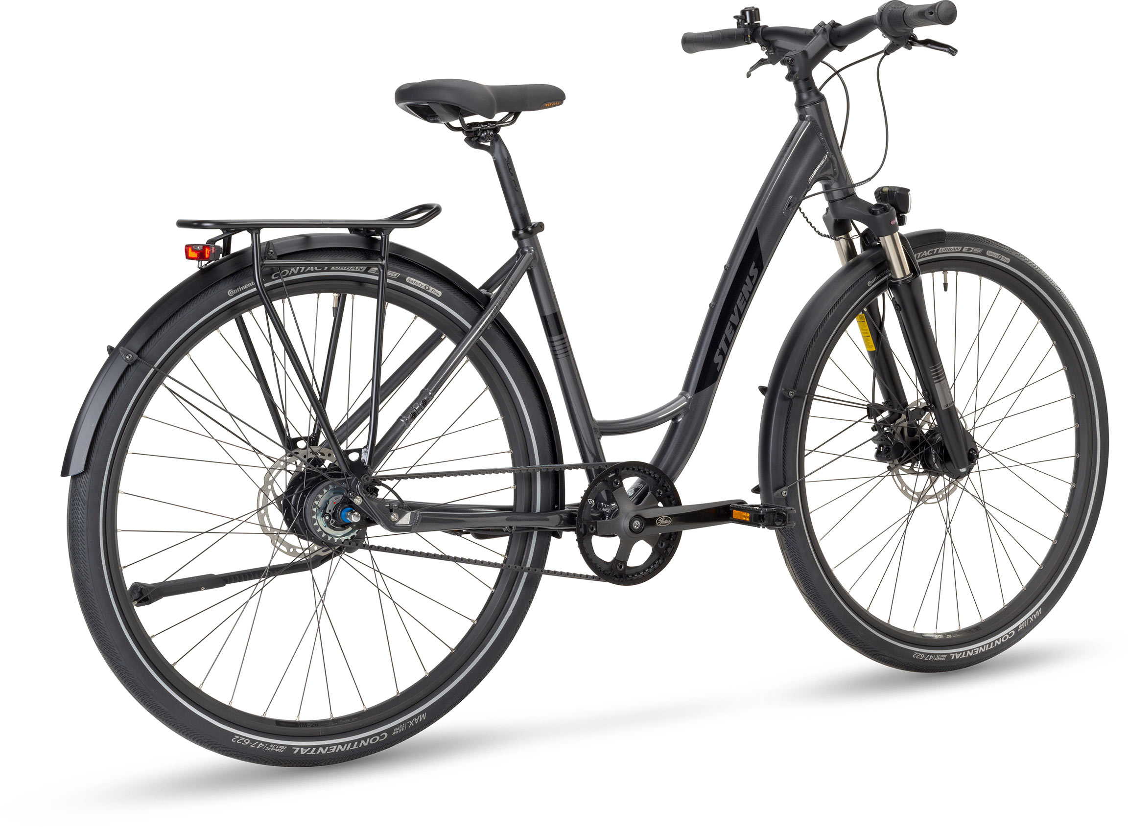 ... maakt de Boulevard Luxe een stijlvolle verschijning op het stedelijke toneel. De aangenaam onderhoudsarme combinatie van naafversnellingen en riemaandrijving houdt deze indruk lang vast. En van het ergonomisch gebogen stuur tot het parkeerlicht achter, van de rest van de volledige uitrusting kun je niets anders dan ingetogen functionaliteit verwachten. Precies goed.