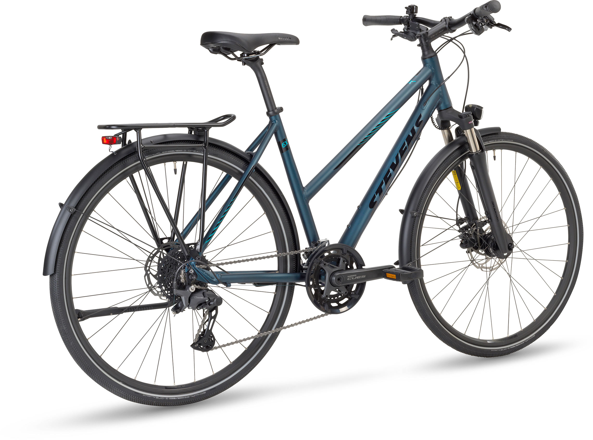 The finely crafted STEVENS frame and the comfortable SR Suntour suspension fork. The Shimano CUES U6000 Linkglide 2x10-speed drivetrain and reliable hydraulic disc brakes from the same company. A complete set of equipment for touring and everyday use and yet an extremely low overall weight. Or in short: a real touring bike benchmark.
