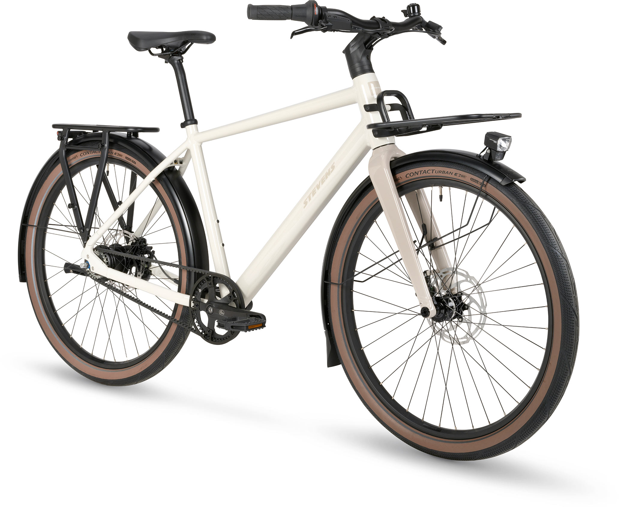 Everyday life with the STEVENS Amant is always something special. The comprehensively equipped, stylish aluminium city bike in creamy Pepper White impresses with its comfortable seating position and confident riding experience. The Shimano Nexus 8-speed hub gear with innovative Gates Carbon Drive belt drive ensures greater efficiency – without any corrosion. The 55 mm Continental Contact Urban tyres offer the perfect balance between smooth running, comfort and puncture protection – ideal for the urban jungle. Your reliable partner for everyday life – light, dynamic and low-maintenance.